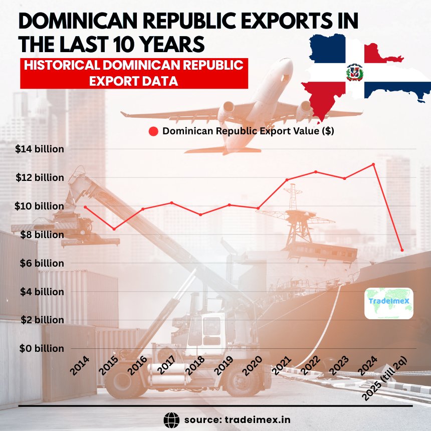 By the end of 2024, the Dominican Republic hit a historic milestone: According to the Dominican Republic export data, the total value of the Dominican Republic exports reached $12.92 billion in 2024, an 8% increase from the previous year , setting a new national record. And 2025 is off to an even stronger start, with January posting the highest monthly exports ever recorded. The Dominican Republic exported goods worth $6.9 billion in the first two quarters of 2025, as per the Dominican Republic customs data.