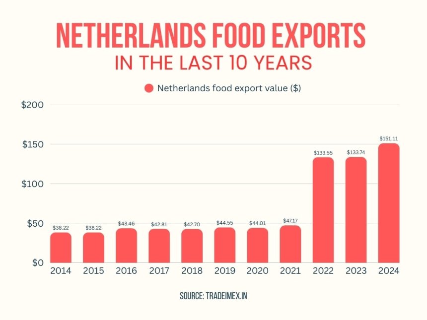 Netherlands Food Exports total value of $151.11 billion in 2024-25