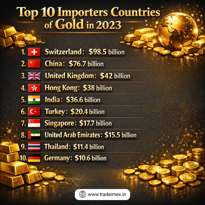Top 10 Importers Countries of Gold in 2023