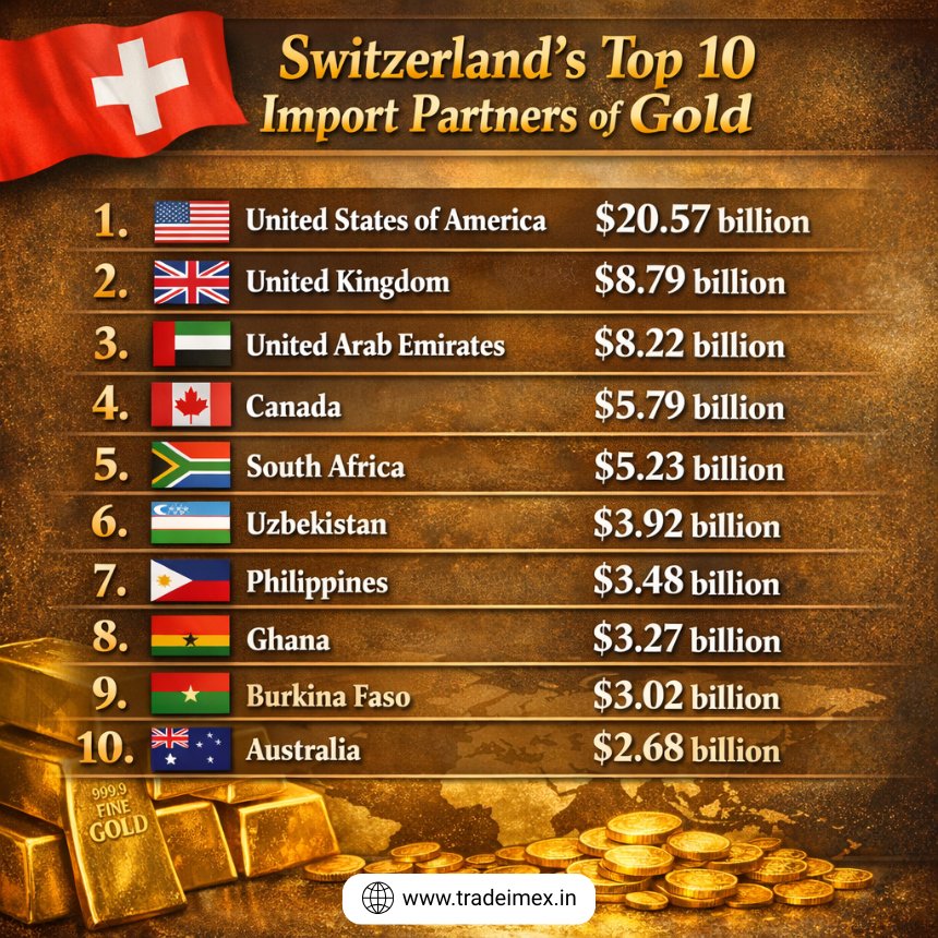 Switzerland’s Top 10 Import Partners of Gold