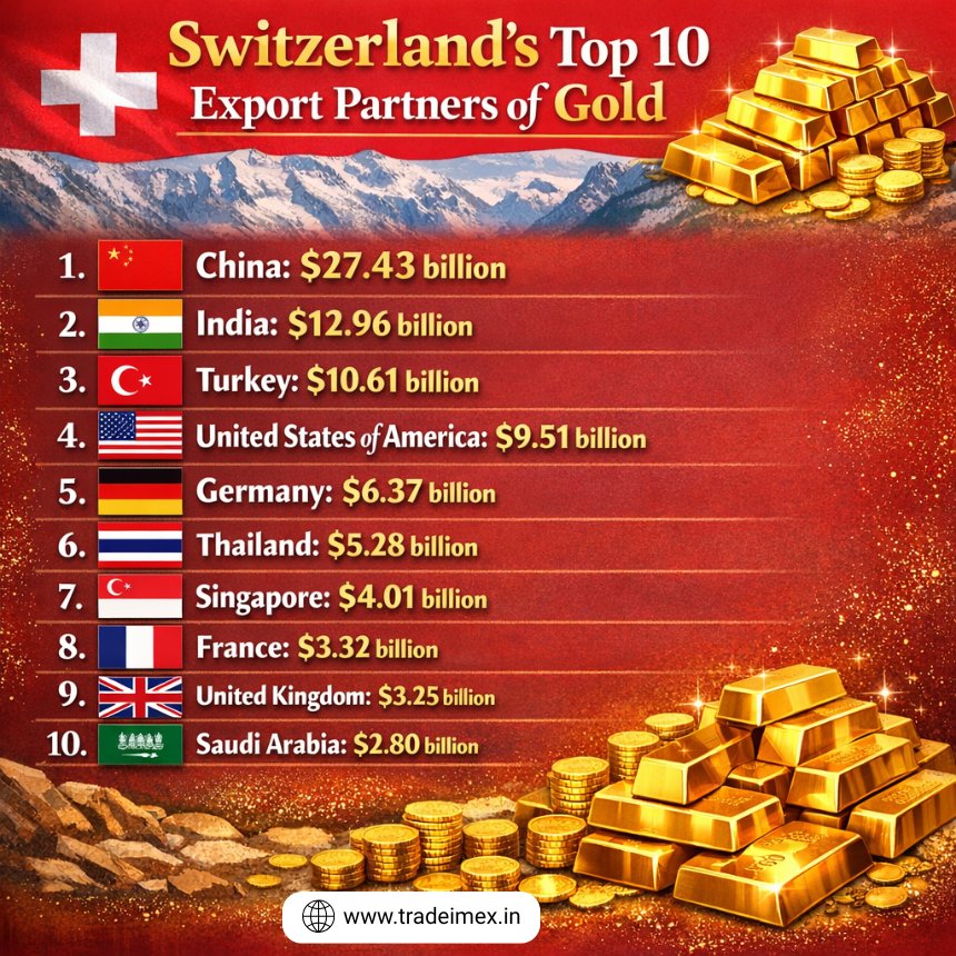 Switzerland’s Top 10 Export Partners of Gold